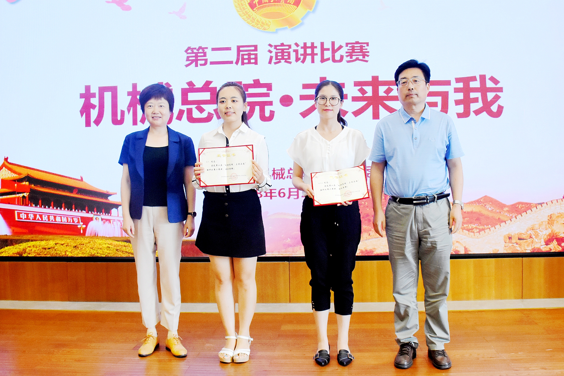 演講比賽在《團歌》中正式開始。14位參賽選手精神飽滿,緊緊圍繞新時代主題,充分展現了新時代機械總院集團新青年立足崗位、開拓進取的精神面貌。最終,北自所吳睿婧獲得一等獎;鄭機所蔣思涵、生產力高京獲得二等獎;中機認檢王弓靜宇、輕量化院郭彩玉、機科股份孫玉潔獲得三等獎。
