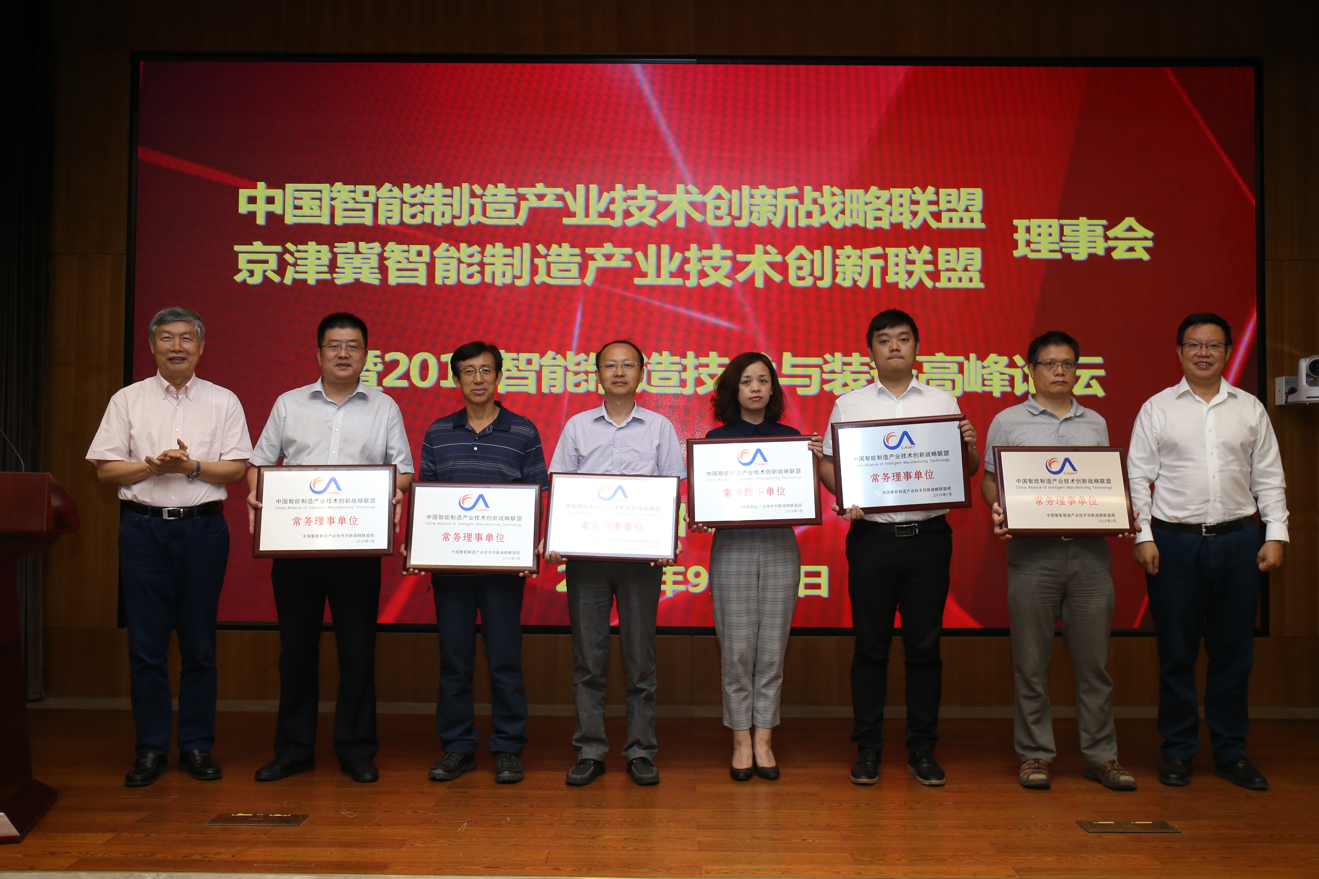 2018年9月17日,中國(guó)智能制造產(chǎn)業(yè)技術(shù)創(chuàng)新戰(zhàn)略聯(lián)盟、京津冀產(chǎn)業(yè)技術(shù)創(chuàng)新戰(zhàn)略聯(lián)盟暨2018智能制造技術(shù)與裝備高峰論壇在京隆重舉行。中國(guó)工程院原院長(zhǎng)周濟(jì)院士、聯(lián)盟會(huì)長(zhǎng)李培根院士、哈爾濱工業(yè)大學(xué)鄧宗全院士、聯(lián)盟理事長(zhǎng)機(jī)械總院集團(tuán)黨委書(shū)記、董事長(zhǎng)、總經(jīng)理王德成、聯(lián)盟副理事長(zhǎng)中國(guó)船舶重工集團(tuán)公司副總經(jīng)理杜剛,聯(lián)盟專家委員中國(guó)工程院制造業(yè)研究室專家董景辰、中國(guó)紡織機(jī)械器材工業(yè)協(xié)會(huì)總工程師祝憲民,中國(guó)一汽、中國(guó)中車、中國(guó)信通科技、西安交通大學(xué)等60家聯(lián)盟理事單位、100余人參會(huì),會(huì)議由機(jī)械總院集團(tuán)副總經(jīng)理、中國(guó)智能制造聯(lián)盟專家常務(wù)副主任委員、秘書(shū)長(zhǎng)單忠德主持。